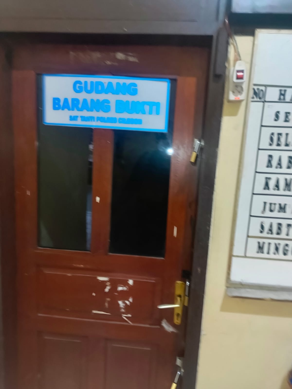 Dalam keperluan mengecek ruang barang bukti selalu dilakukan untuk menjaga kelengkapan barang bukti , cek fisik kondisi barang bukti yang sudah di titip di sattahti polres cilegon. Setelah dilakukan pengecekan barulah barang bukti dapat dibawa dan diambil oleh penyidik untuk keperluan sidang.Seperti yang sudah diketahui bahwa sattahti sering melakukan kegiatan kontrol cek kondisi barang bukti sehingga ketika dikeluarkan barang bukti masih dalam keadaan semula pada saat diberikan oleh penyidik yang menitipkan barang bukti ke sattahti.