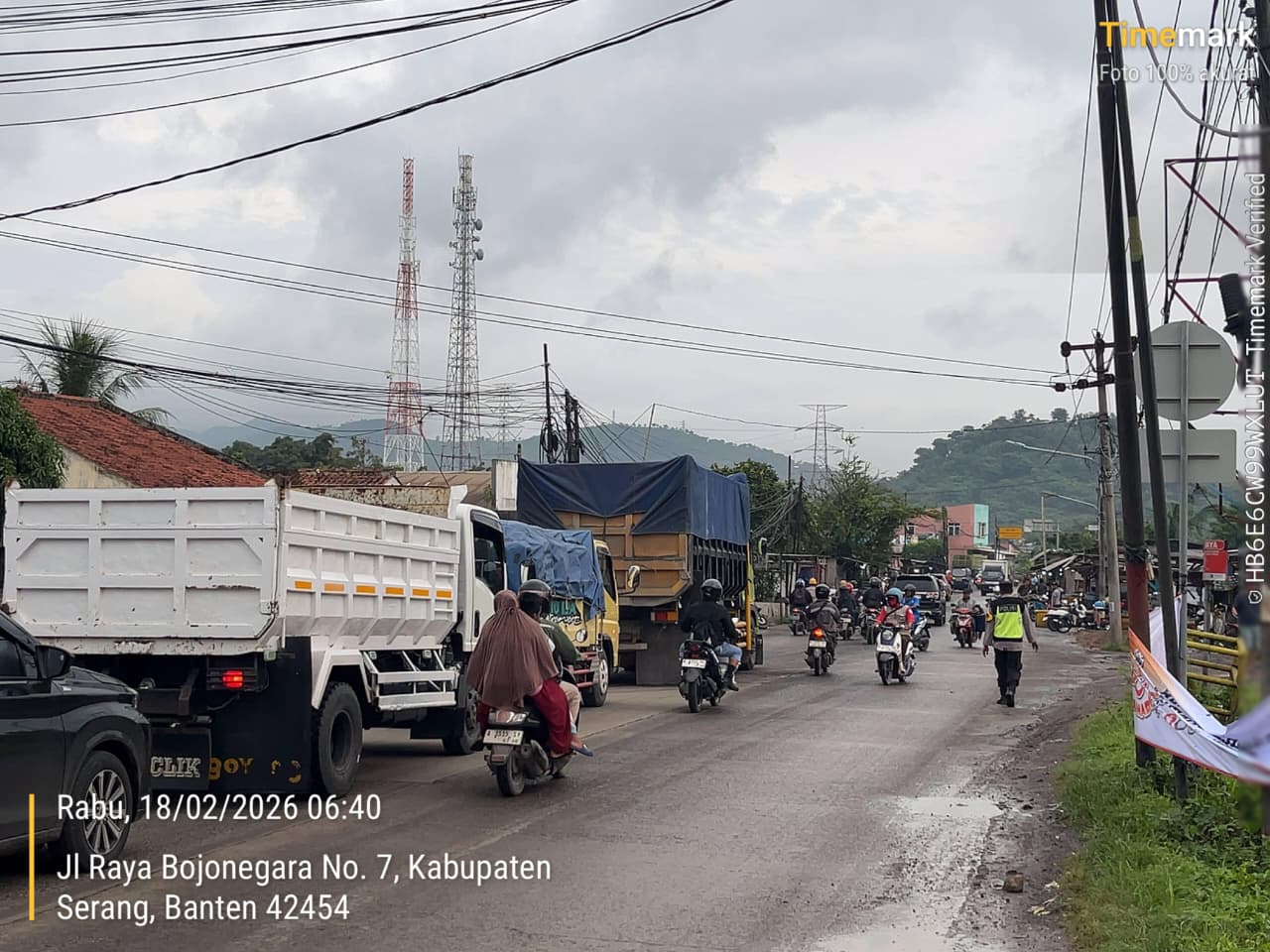 Cilegon – Polres Cilegon Polda Banten, Dalam Mewujudkan Aksi Nyata Pelayanan Kepada Masyarakat, Personil Polsek Bojonegara Polres Cilegon Polda Banten Laksanakan Strong Point Pengaturan Lalu lintas di depan Simpang Wadas / depan pelelangan ikan (TPI) Bojonegara, Rabu (18/02/2026).