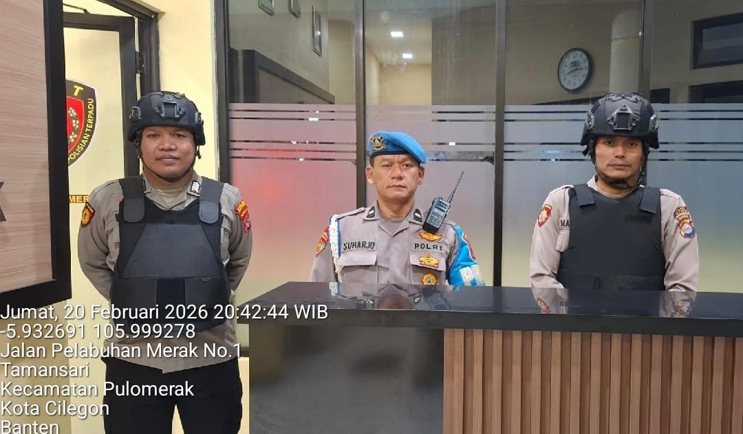 Cilegon - Personel piket jaga Polsek Kskp Merak Polres Cilgon Polda Banten melaksanakan siaga 1 Polsek pelaksanaan Sispam Mako oleh piket siaga dipimpin oleh Kspk Polsek Kskpy Merak Polres Cilegon Polda Banten, Jumat (20/02/2026).