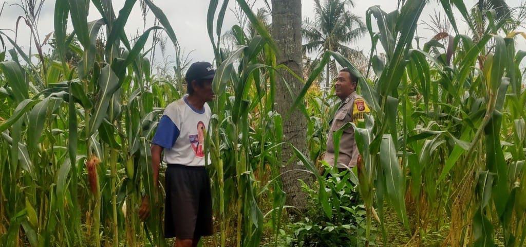 Dalam kegiatan monitoring ini, Bhabinkamtibmas meninjau langsung kondisi lahan jagung.