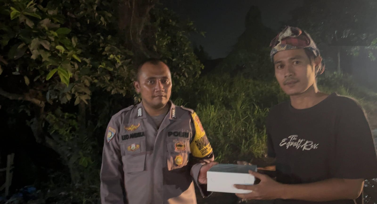 Bripka Leo A & Brigpol Chaeruman Gelar Sahur On The Road, Bagikan Bingkisan Nasi Kotak Kepada Warga Sekitaran Bojonegara & Sosialisasi Call Center 110