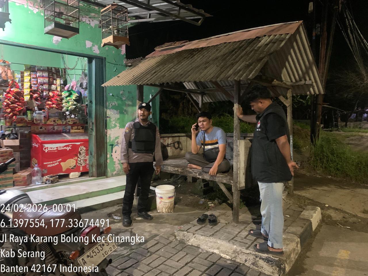 *Cilegon* – Dalam Rangka Pencegahan Kejahatan Jalanan dan Memelihara situasi keamanan dan menjaga serta memberikan rasa aman dan nyaman di masyarakat,Salah satu upaya untuk mewujudkan hal tersebut sebagaimana yang dilakukan oleh Personil Polsek Cinangka Polres Cilegon Polda Banten melaksanakan giat patroli blue light malam hari hingga menjelang pagi, Selasa (24/02/2026).