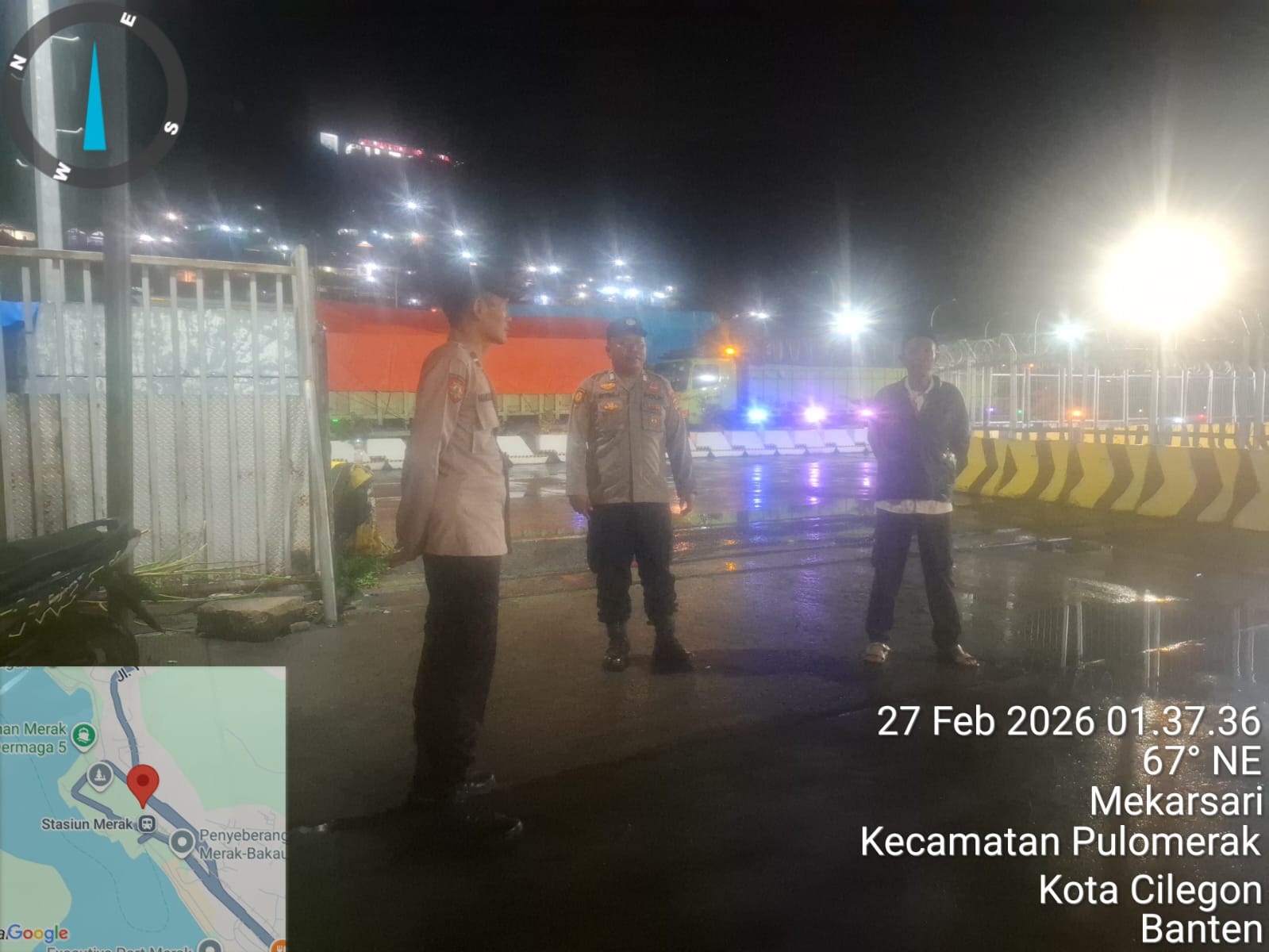 Cilegon - Personil Polsek Kskp Merak Polres Cilegon melaksanakan patroli di kawasan pelabuhan merak memberikan rasa aman dan damai, Jumat (27/02/2026)
