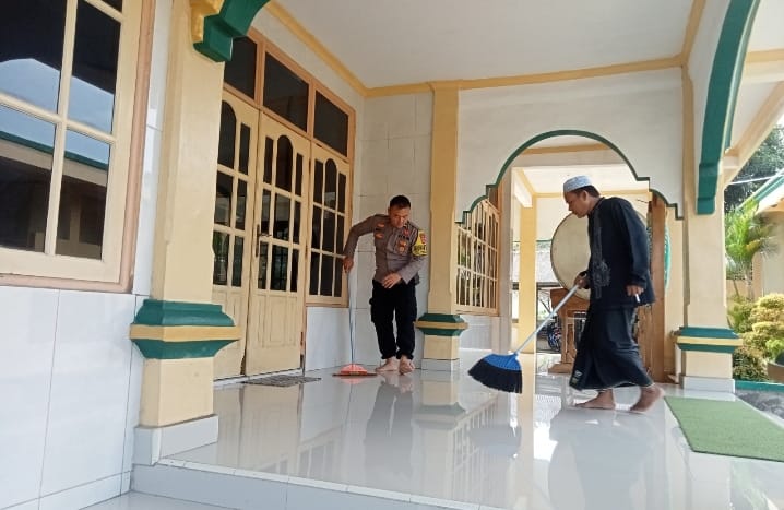 Kegiatan tersebut dilakukan dengan membersihkan area halaman dan sekitar masjid bersama tokoh agama dan masyarakat setempat guna menciptakan lingkungan ibadah yang bersih, nyaman, dan kondusif bagi jamaah.Selasa.(03-03-2026).