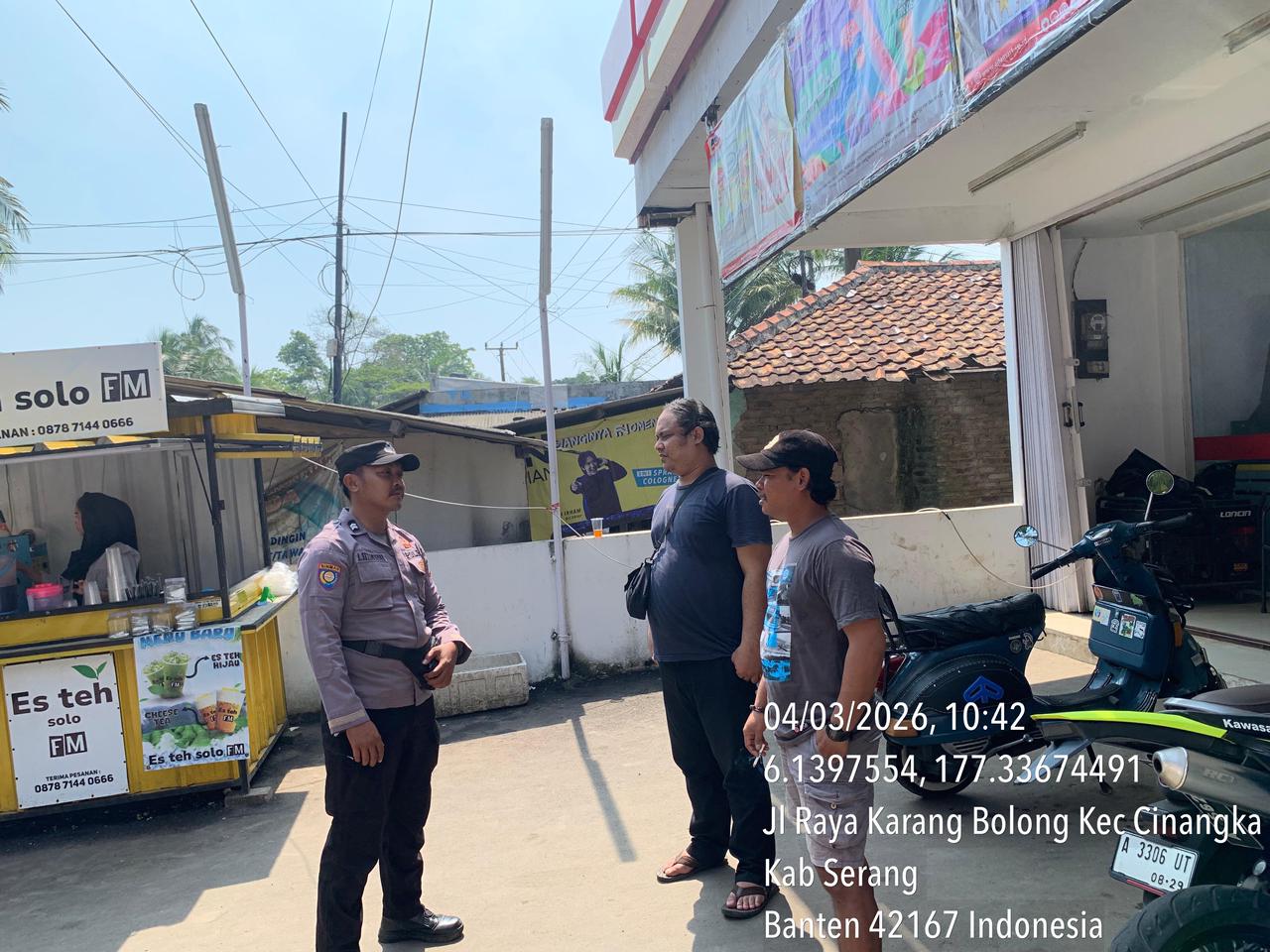 Bhabinkamtibmas Polsek Cinangka melaksanakan Sambang dan Komunikasi Kamtibmas dengan menyampaikan pesan Kamtibmas kepada masyarakat di Desa Cinangka Kec. Cinangka Kab. Serang. Rabu, 4/03/2026