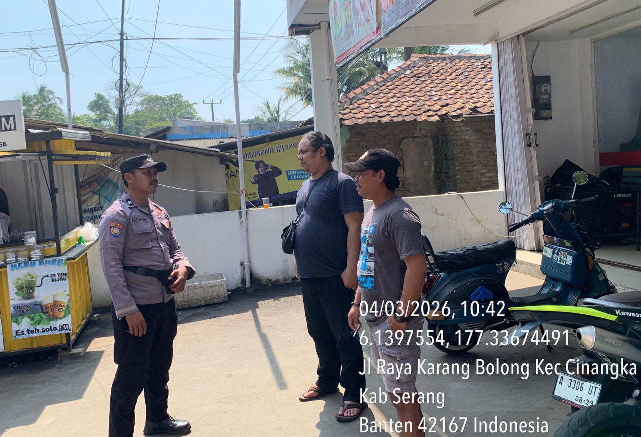 Bhabinkamtibmas Polsek Cinangka melaksanakan Sambang dan Komunikasi Kamtibmas dengan menyampaikan pesan Kamtibmas kepada masyarakat di Desa Cinangka Kec. Cinangka Kab. Serang. Rabu, 4/03/2026