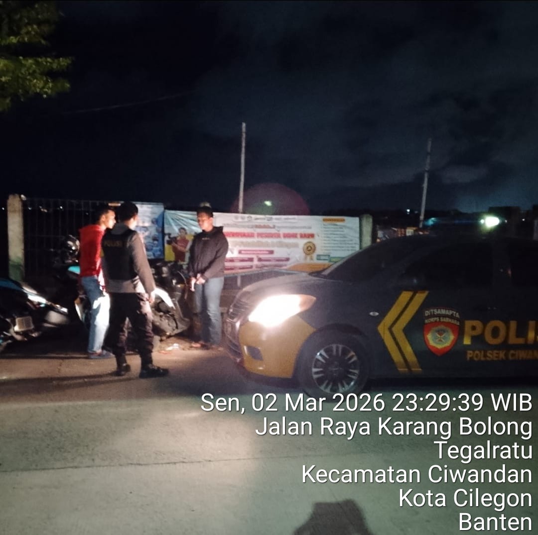 Cilegon - Polsek Ciwandan Polres Cilegon kembali menunjukkan komitmennya dalam menjaga keamanan dan ketertiban di wilayah hukumnya Polsek Ciwandan melaksanakan Blue Light Patrol dalam rangka antisipasi gangguan kamtibmas, C3, perkelahian remaja, perang sarung, kejahatan malam, balap liar, dan geng motor, Rabu (04/03/2026).