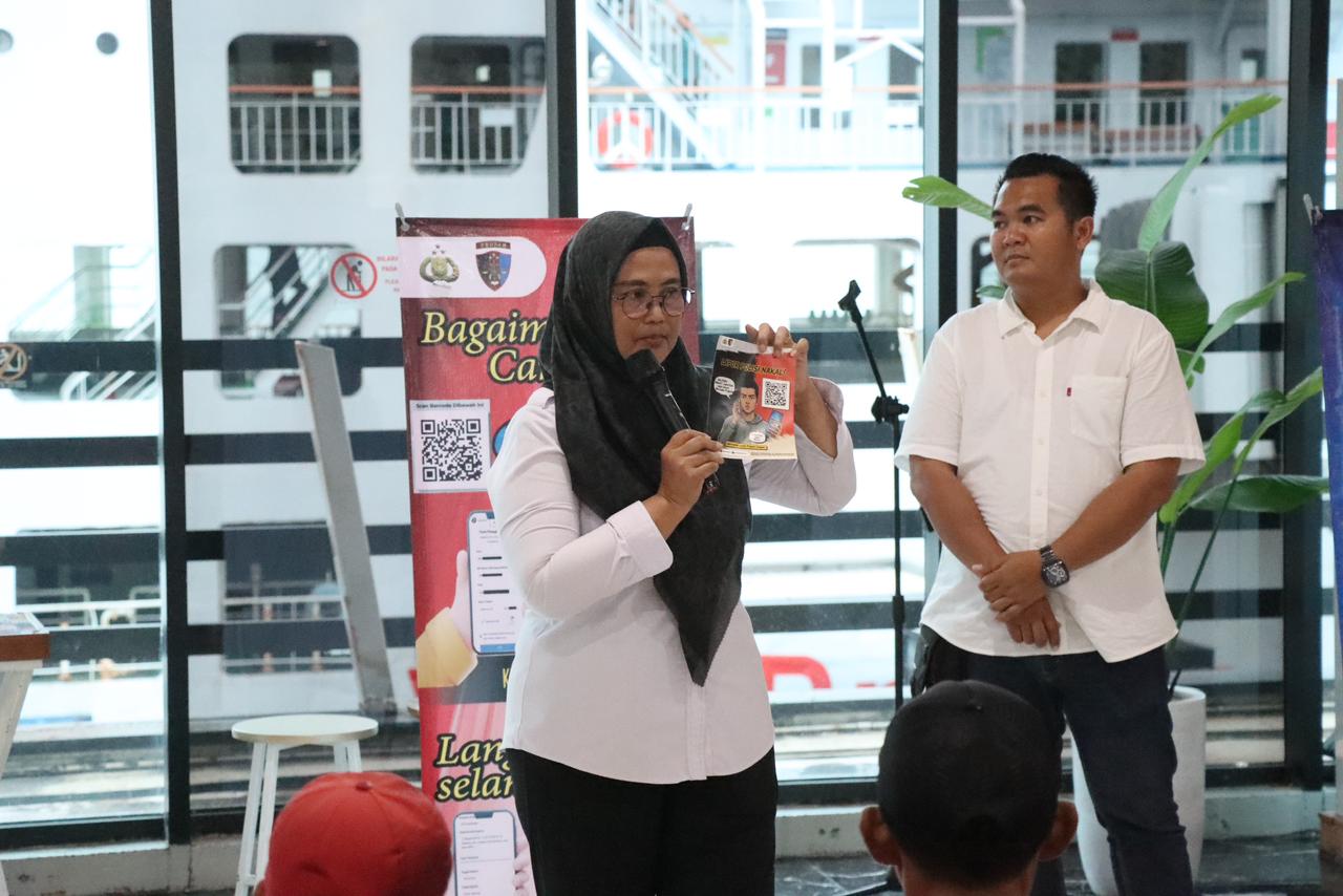 CILEGON – Upaya memperkuat pengawasan internal dan meningkatkan transparansi pelayanan terus dilakukan jajaran Polda Banten melalui sosialisasi QR Barcode Bidpropam kepada masyarakat. Kegiatan tersebut dilaksanakan pada pukul 17.00 WIB di ruang tunggu penumpang eksekutif Pelabuhan Merak, Rabu (4/3/2026).