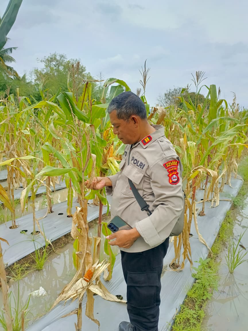 Pada kesempatan tersebut Kanit Binmas polsek Cibeber Polres Cilegon Polda Banten meninjau langsung lahan pertanian Jagung milik warga Binaan Lingkungan kelurahan Karang Asem Kec. Cibeber.