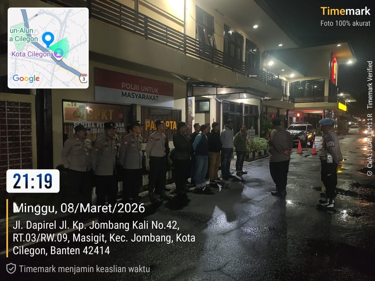 Pada malam hari yang tenang, jajaran personel dari Polres Cilegon melaksanakan patroli rutin guna menjaga situasi keamanan dan ketertiban masyarakat tetap kondusif. Patroli ini menyasar sejumlah titik rawan seperti kawasan permukiman, pusat keramaian, hingga jalur-jalur utama yang sering dilalui kendaraan pada malam hari.