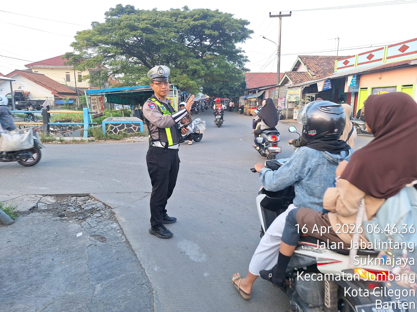 Cilegon, Satlantas Polres Cilegon Polda Banten – Berikan pelayanan kepada masyarakat Kasat lantas Polres Cilegon AKP Ridwan memerintahkan jajaran lalulintas untuk melaksanakan pengaturan lalu lintas di penggal – penggal jalan yang rawan kemacetan di Kota Cilegon, (Kamis,16/4/2026)