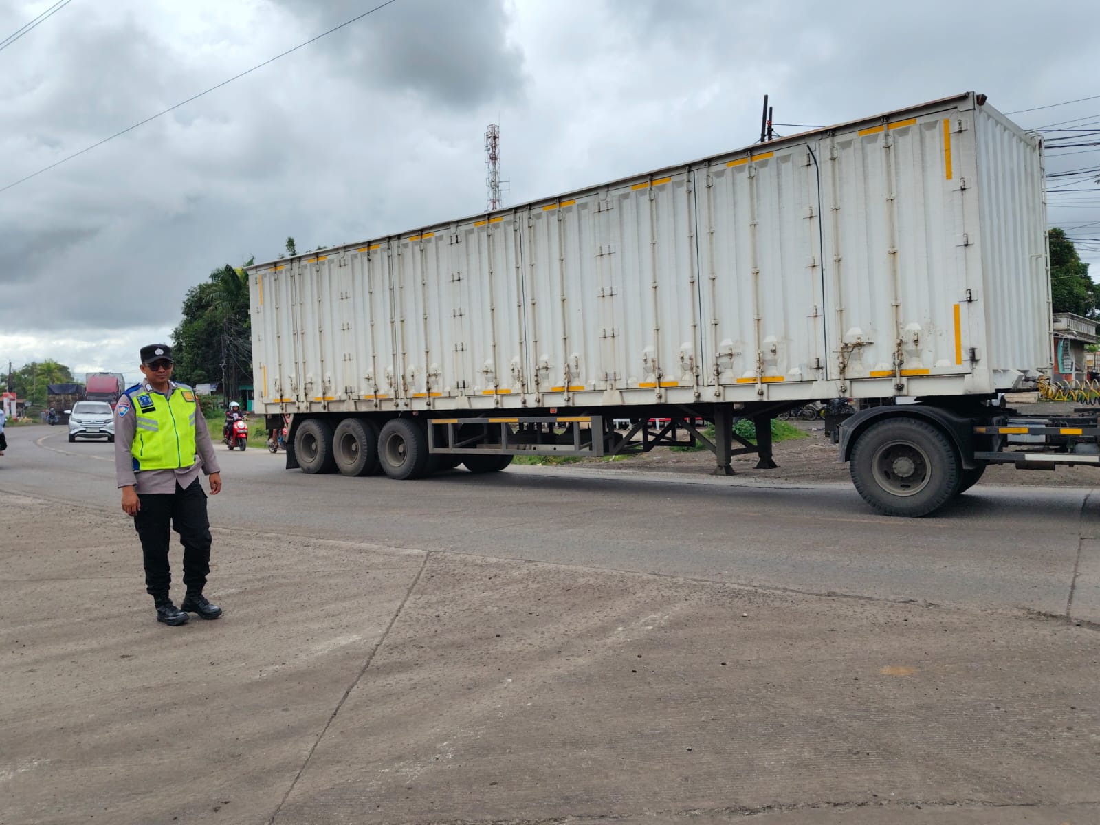 Kapolres Cilegon AKBP Martua Raja Taripar Laut Silitonga Melalui Kapolsek Kskp Banten Polres Cilegon Iptu Bobi Nainggolan menyampaikan Laksanakan Pengamanan Sesuai plotinganya lakukan Pengaturan Supaya Arus Lalu Lintas tetap Berjalan lancar dan Pastikan tidak ada hambatan.