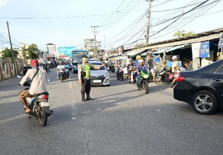 Personel Polres Cilegon Laksanakan Pengaturan Lalu Lintas di Jalur Anyar–Cinangka