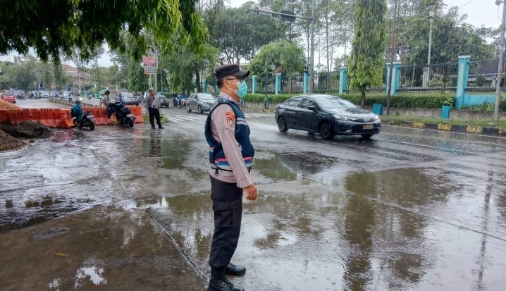 Personil Polsek Purwakarta Strong Point pagi Memperlancar Arus Lalu lintas Pagi simpang ADB
