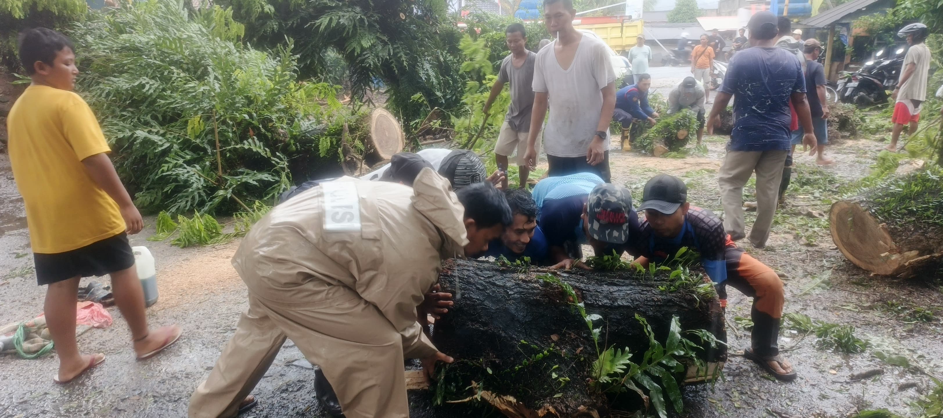 Polsek Anyar Giat Evakuasi pohon tumbang yang diakibatkan hujan lebat dan angin kencang