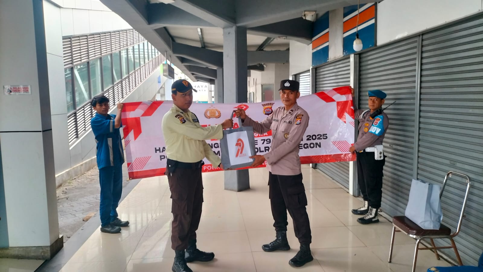 Sambut HUT Bhayangkara ke-79, Polsek Kp Merak Bagikan Sembako untuk Warga