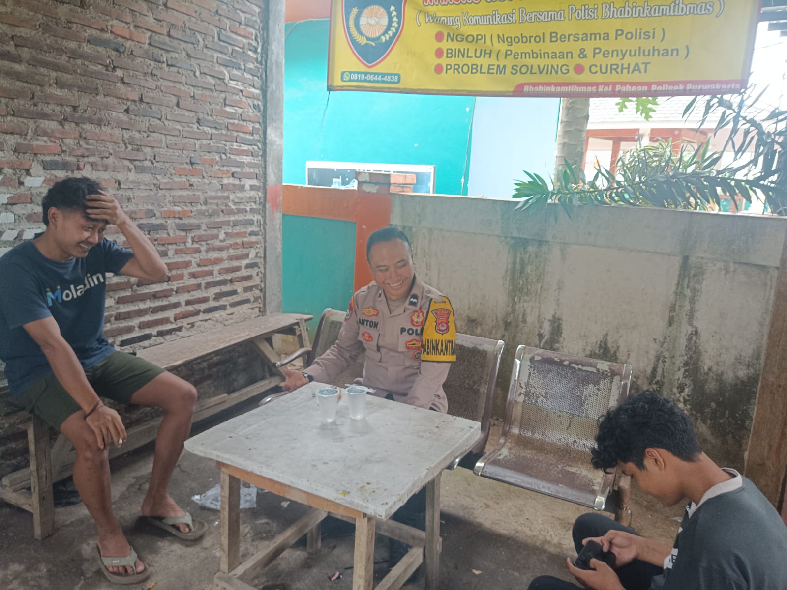 Bhabinkamtibmas Kel. Pabean Polsek Purwakarta melaksanakan giat sambang silaturahmi dengan Pemuda Link. Pabean Kel. Pabean di Warung Bhabinkamtibmas dalam rangka Dialogis Kamtibmas guna menciptakan rasa aman di tengah-tengah masyarakat sehingga dapat terciptanya situasi Kamtibmas yang aman di daerah hukum Polsek Purwakarta serta melaksanakan giat program POLRES CILEGON MENYAPA dan giat program QUICK WINS PRESISI selanjutnya Bhabinkamtibmas memberikan himbauan dan menyampaikan pesan kamtibmas.