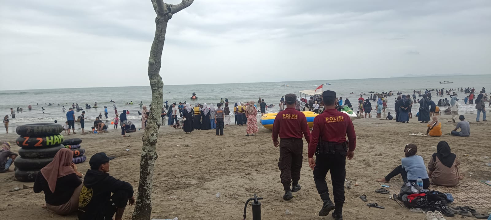 Anggota Satpamobvit Polres Cilegon Polda Banten,antisipasi laka laut,beri himbawan kepada pengunjung pantai lagundi