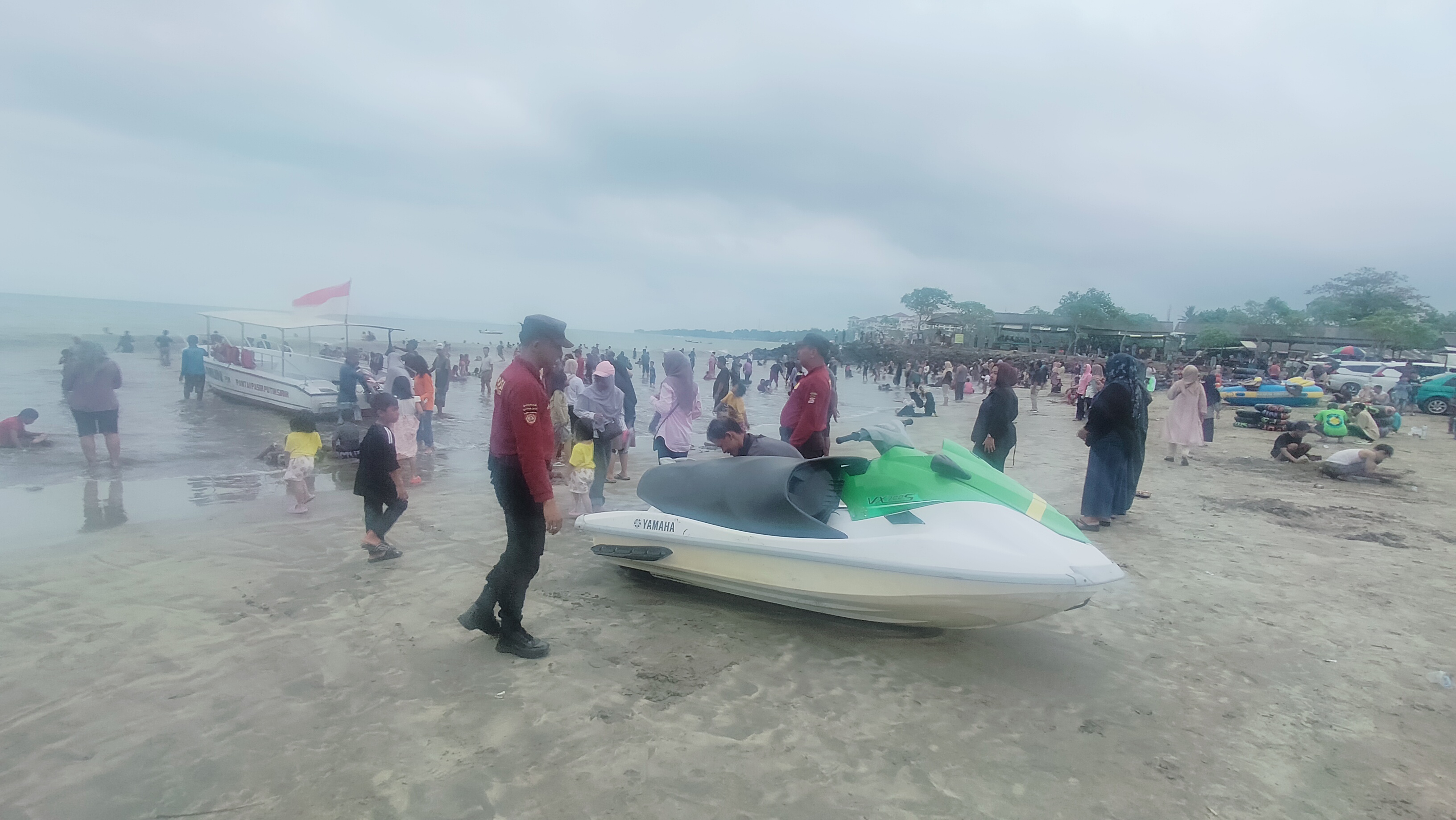 Personel Satpamobvit Polres Cilegon melaksanakan patroli wisata serta memberikan himbauan kepada para wisatawan, guna mewujudkan harkamtibmas di daerah hukum Polres Cilegon. Dengan pengawasan yang dilakukan oleh personel Satpamobvit Polres Cilegon, situasi di sekitar pantai ini tetap aman dari berbagai potensi ancaman.