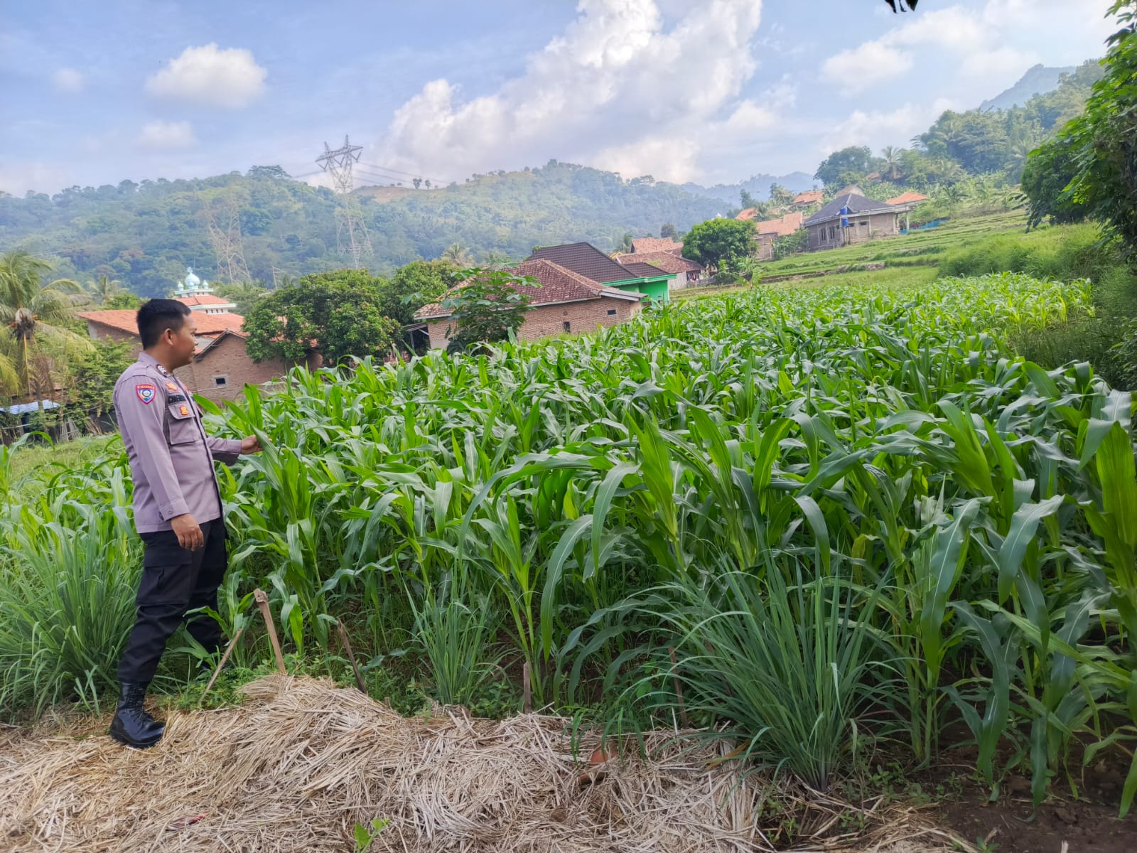 Bhabinkamtibmas Desa Mekarjaya Monitoring Perkembangan Tanaman Jagung Dalam Rangka Giat Ketahanan Pangan
