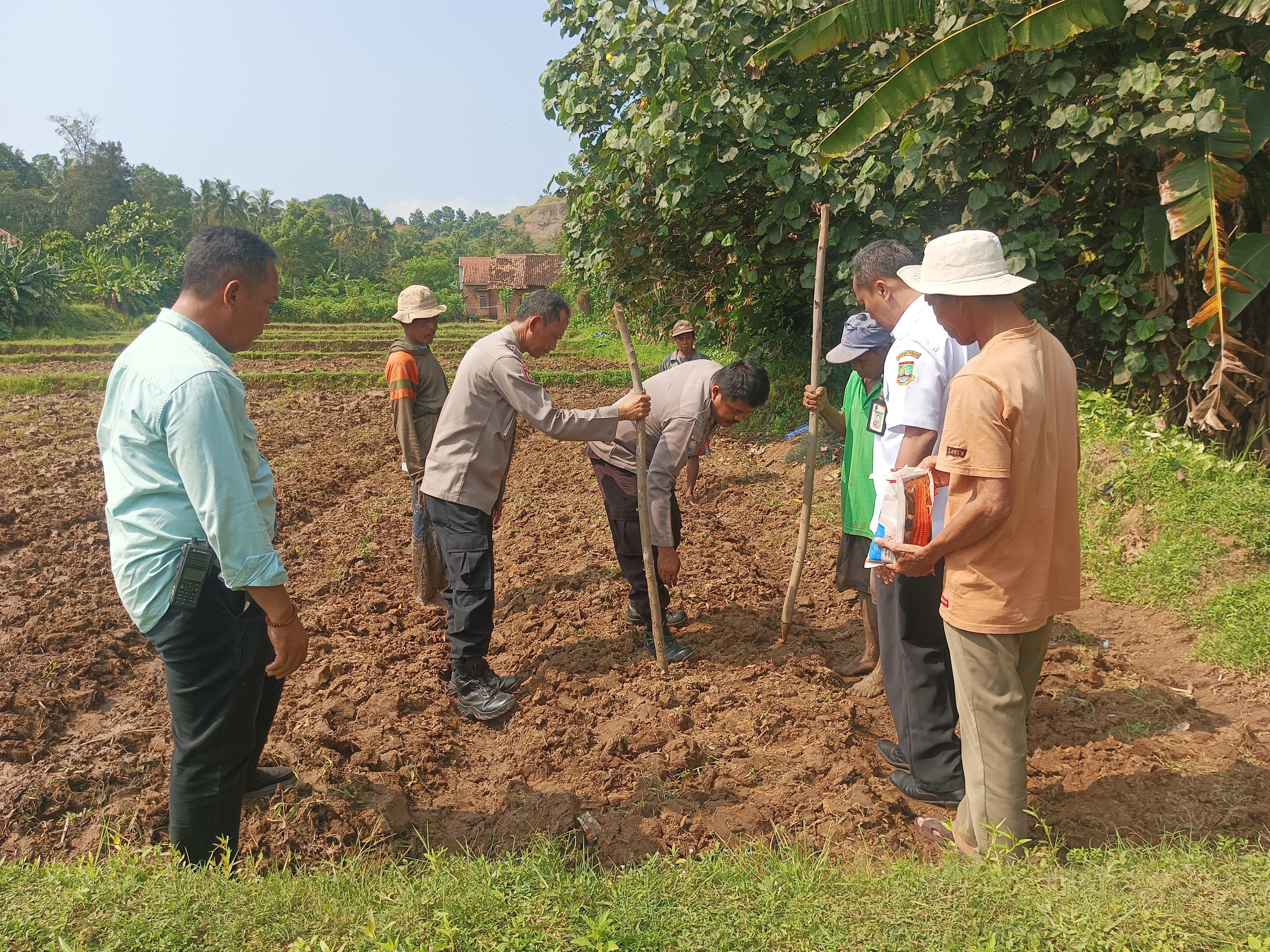 Cilegon - Mendukung Asta Cita Presiden Republik Indonesia Tentang Ketahanan Pangan,secara Serentak Penanaman Jagung Kuartal III, Kapolsek Ciwandan Terjun Langsung ke lahan Penanaman jagung secara Serentak Bersama Personil Dan masyarakat, Kamis (10/07/2025).