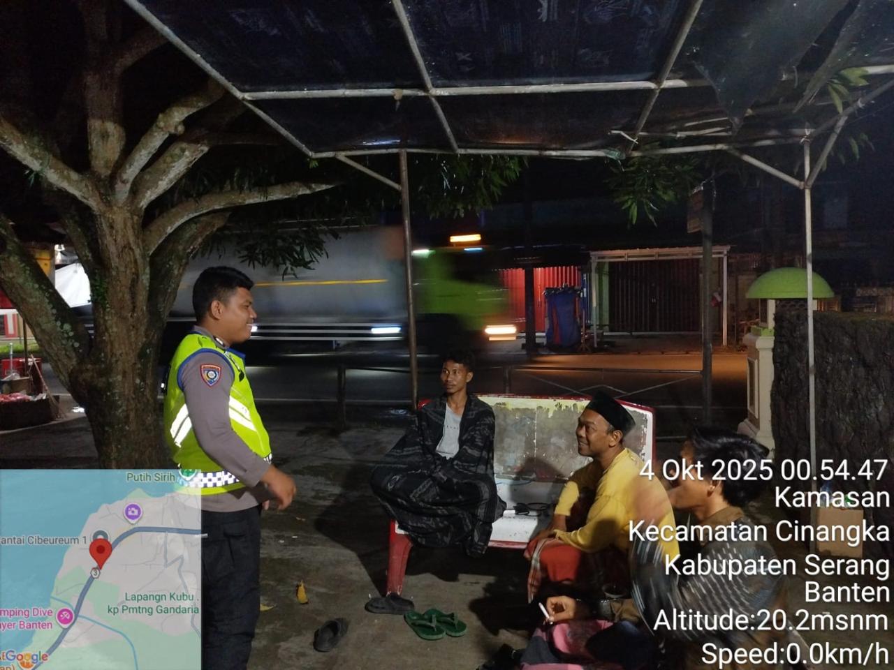 -*POLRES CILEGON*-Polda Banten. Dalam rangka Menjaga situasi kamtibmas kondusif mencegah terjadinya gangguan Kamtibmas Premanisme, Kriminalitas di wilayah Personil Piket Polsek Cinangka mencegah dan Menekan Para Pelaku kejahatan dengan Patroli Blue Light yang di Lakukan Polsek Cinangka gencar Patroli Blue Light dini hari di Wilkum Cinangka Kab Serang . Sabtu (04/10/2025)