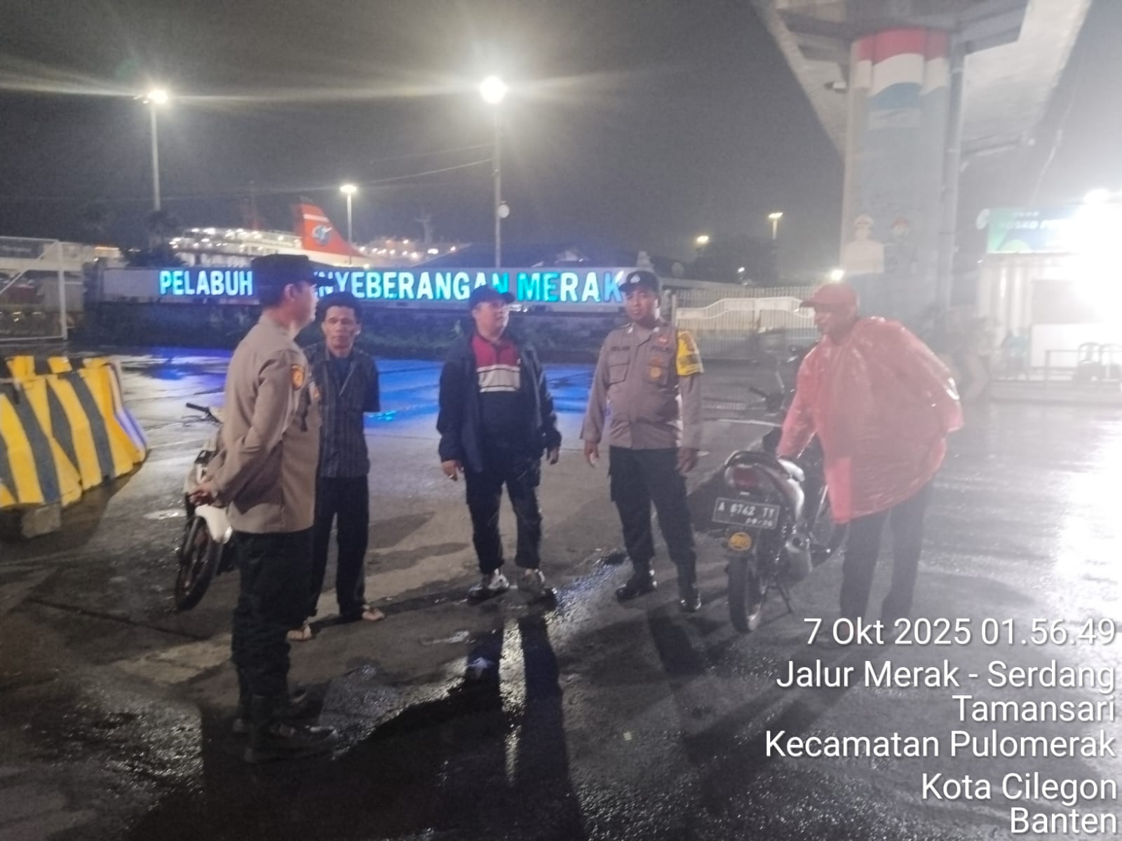 Cilegon - Personil Polsek Kskp Merak Polres Cilegon melaksanakan patroli di kawasan pelabuhan merak memberikan rasa aman dan damai, Selasa (07/10/2025)