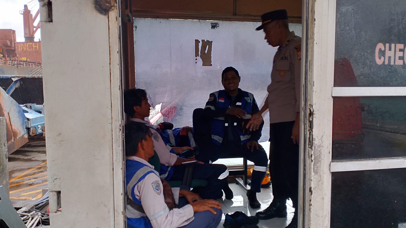 Jalin Silaturahmi, Bhabinkamtibmas Pelabuhan Polsek KP Banten berbincang ke Buruh Pelabuhan