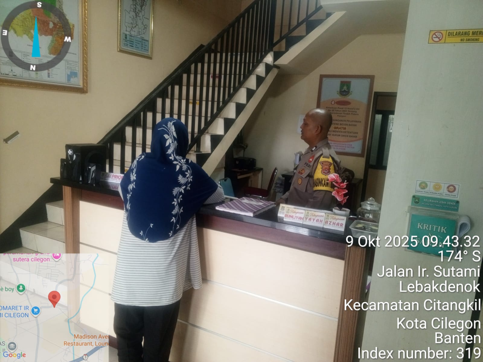 Cilegon –  Bhabinkamtibmas Polsek Ciwandan Polres Cilegon Polda Banten yaitu dengan menyambangi kantor Kelurahan binaannya guna membantu dan memantau langsung proses Pelayanan Masyarakat, Kamis (09/10/2025).