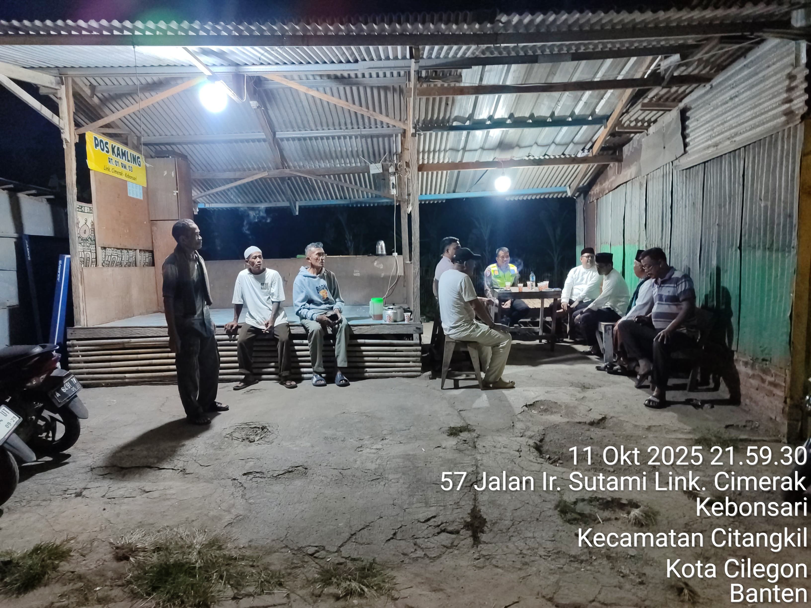 Kapolres Cilegon Polda Banten AKBP Dr. Martua Raja Taripar Laut Silitonga Melalui Kapolsek Ciwandan Polres Cilegon Polda Banten KOMPOL Andi Suherman mengatakan bahwa Kegiatan Kali ini memantau kegiatan Siskamling di Daerah Hukum Polsek Ciwandan untuk menjaga stabilitas keamanan dan ketertiban masyarakat.