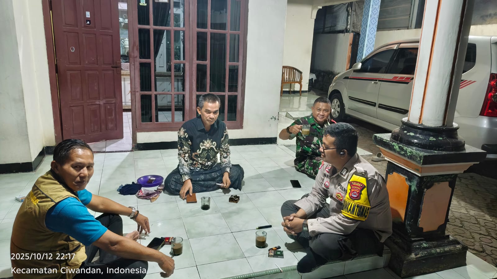 Cilegon - Bhabinkamtibmas Polsek Ciwandan Polres Cilegon Polda Banten Melaksanakan Patroli Kunjungan Malam dan terus memberikan pembinaan dan penyuluhan tentang pentingnya menjaga kamtibmas di daerah hukum Polsek Ciwandan Polres Cilegon Polda Banten, Minggu (12/10/2025).
