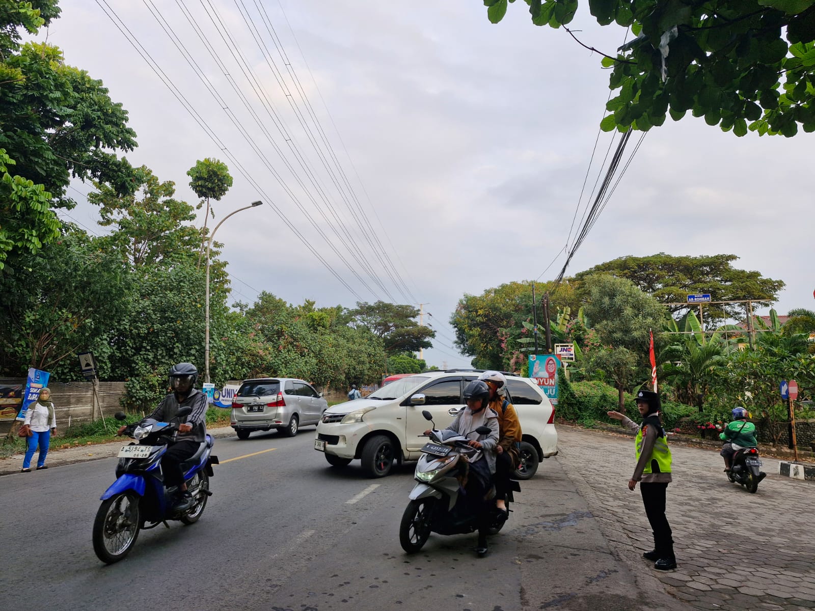 Cilegon,Polres Cilegon Polda Banten Pada Senin/13/07/2025 Pukul 06.30 Wib, Personil Siwas Polres Cilegon, Aipda Emi Prasetyo melaksanakan kegiatan pengaturan arus lalu lintas di Jalur Protokol jalan utama Kota Cilegon tepat nya di jalur depan perumahan arga baja Pura Kota Cilegon.