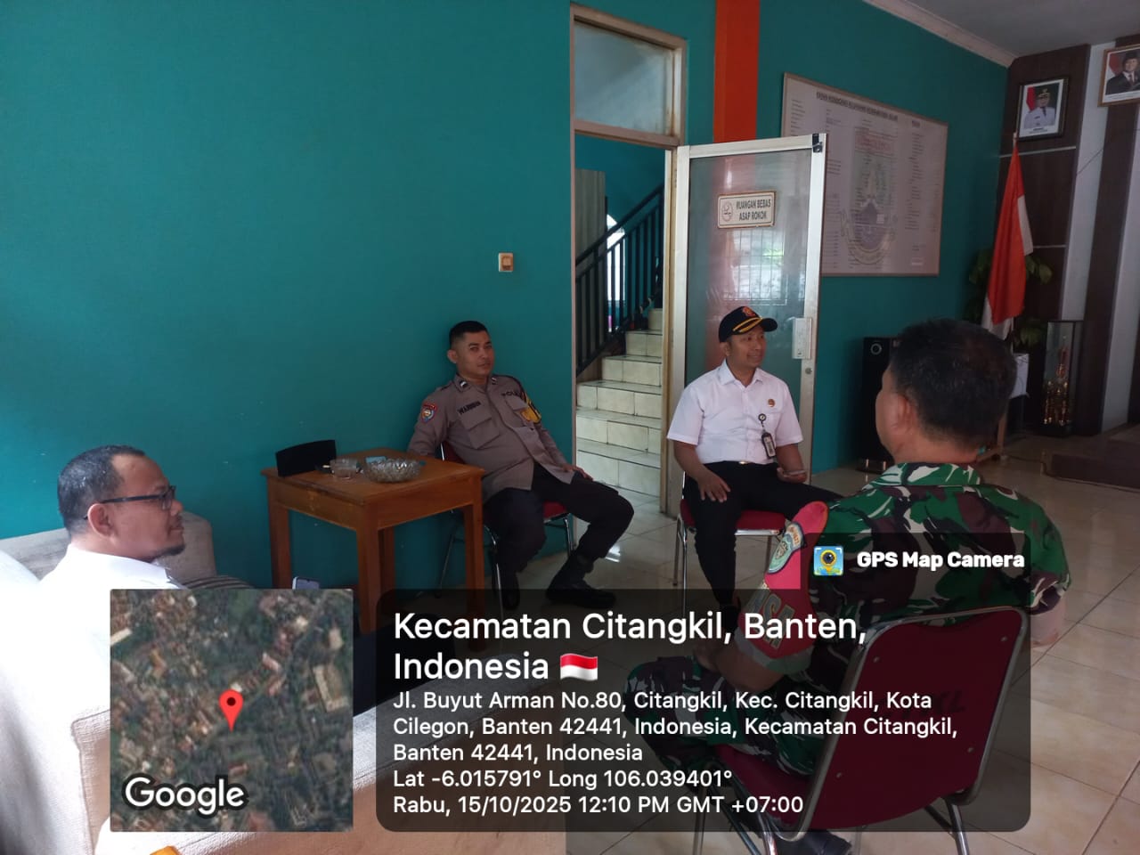 Cilegon - Personil Bhabinkantibmas Polsek Ciwandan Polres Cilegon Polda Banten Bersinergi Dengan Babinsa Koramil Ciwandan dan Instansi Kelurahan dalam rangka Mengabdikan Diri Kepada Masyarakat dan Berikan Rasa Aman serta Himbauan Kamtibmas Kepada Warga Masyarakat,Rabu (15/10/2025).