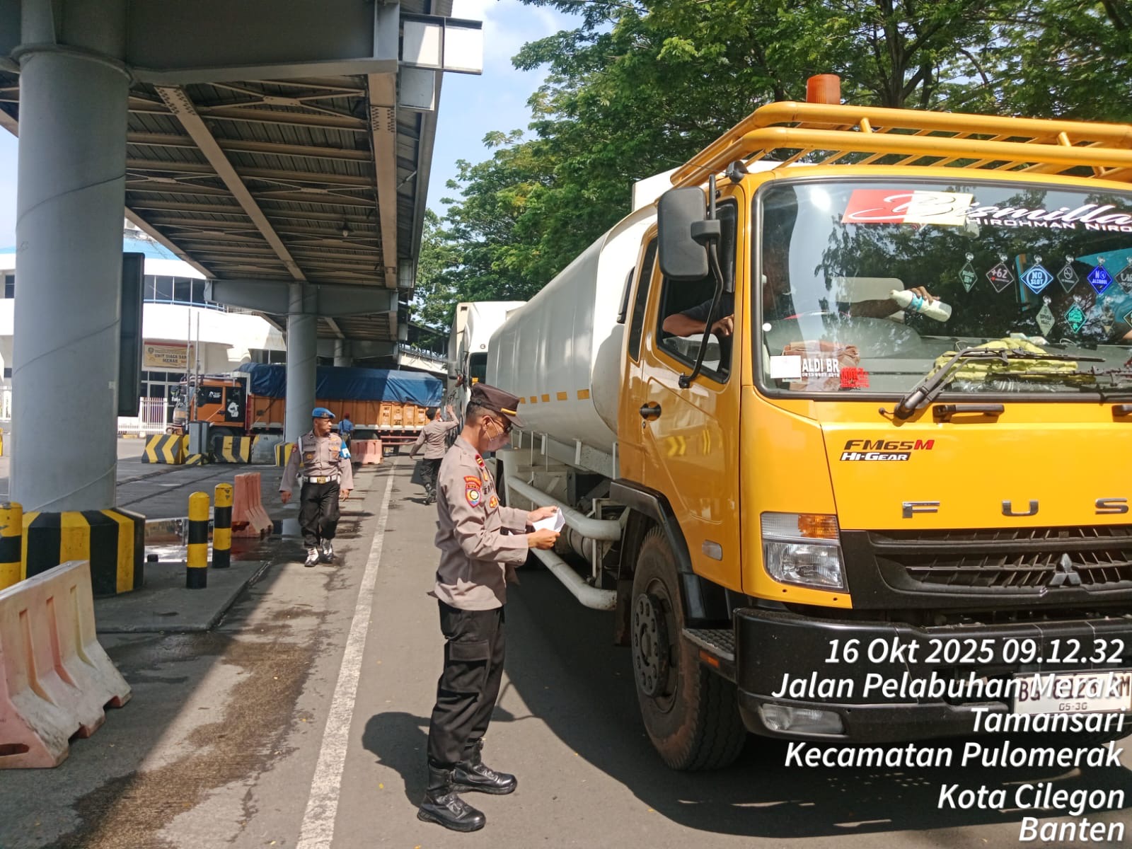 Cilegon - Personil Polsek Kskp Merak Polres Cilegon Polda Banten dengan di Pimpin oleh Kapolsek Kskp Merak AKP Gusti Almasri P melaksanakan kegiatan Razia di kawasan pelabuhan merak antisipasi tindak kriminal, Kamis (16/10/2025).