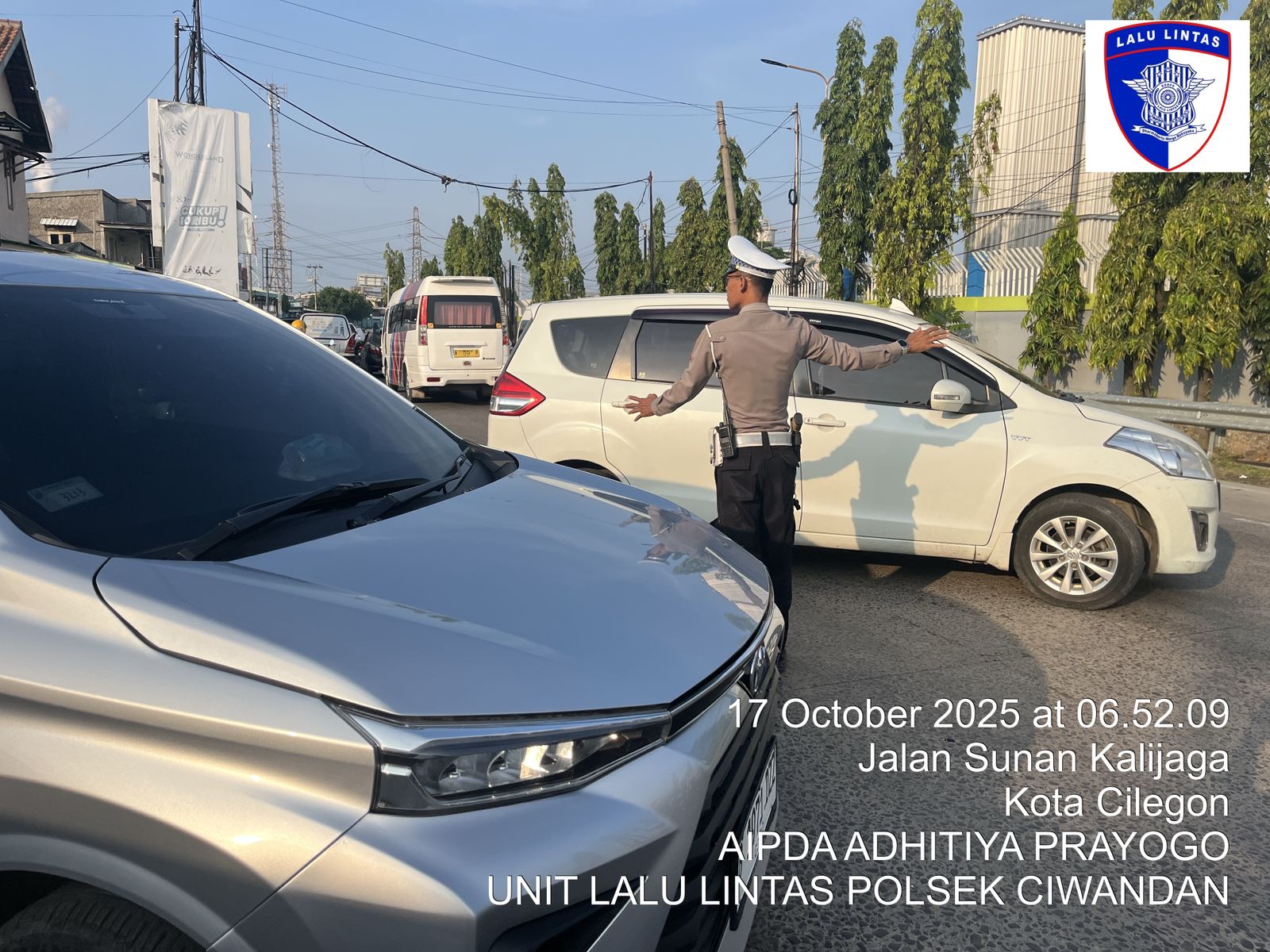 Cilegon - Personil  Polsek Ciwandan Polres Cilegon Polda Banten melaksanakan giat Strong Poin Pengaturan Lalu Lintas Disimpang Brown Kelurahan Gunung Sugih guna menciptakan ketertiban, keamanan dan Kelancaran Lalu-lintas bagi masyarakat, Jum’at (17/10/2025).