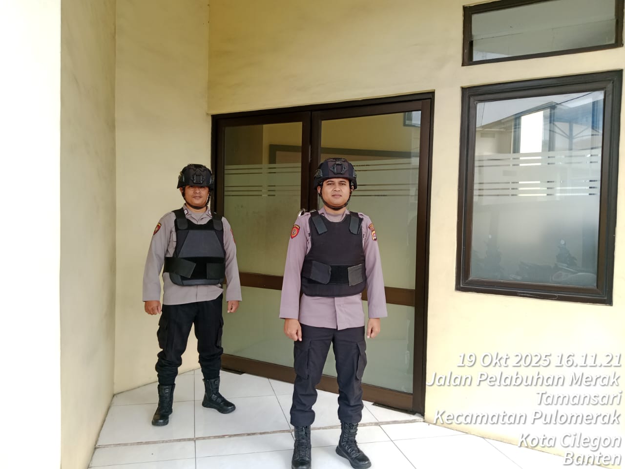 Cilegon - Personel piket jaga Polsek Kskp Merak Polres Cilgon Polda Banten melaksanakan siaga 1 Polsek pelaksanaan Sispam Mako oleh piket siaga dipimpin oleh Kspk Polsek Kskp Merak Polres Cilegon Polda Banten, Minggu (19/10/2025).