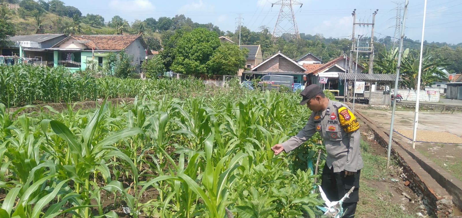 Ketahanan pangan Kel. Lebakgede kec. Pulomerak, Kapolsek Pulomerak lakukan pengecekan tanaman jagung