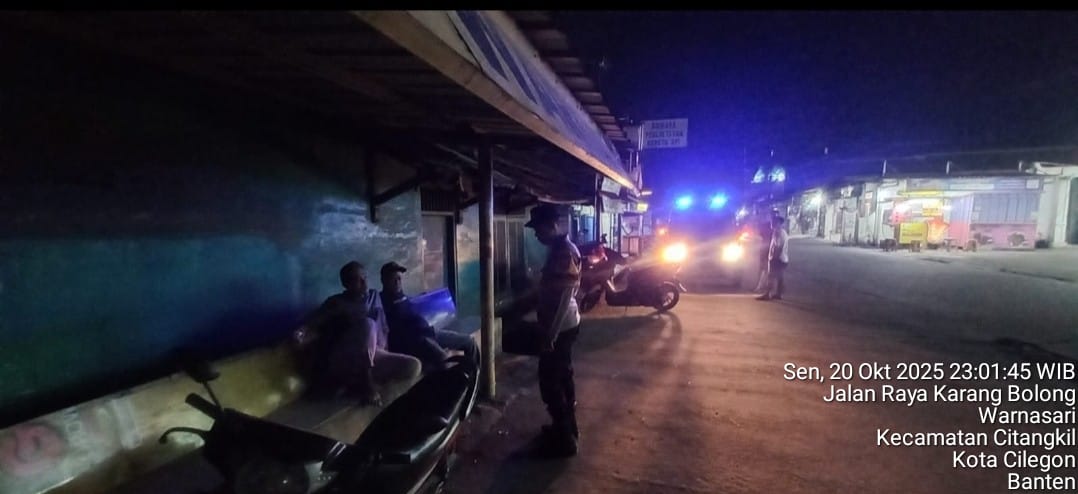 Cilegon - Polsek Ciwandan Polres Cilegon Polda Banten kembali menunjukkan komitmennya dalam menciptakan keamanan dan ketertiban masyarakat (kamtibmas) yang kondusif melalui Kegiatan Patroli Malam, Kegiatan ini dilakukan secara rutin dengan berkeliling di daerah hukum Polsek Ciwandan, Selasa (21/10/2025).