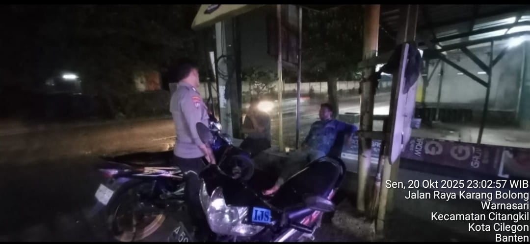 Cilegon - Polsek Ciwandan Polres Cilegon Polda Banten kembali menunjukkan komitmennya dalam menciptakan keamanan dan ketertiban masyarakat (kamtibmas) yang kondusif melalui Kegiatan Patroli Malam, Kegiatan ini dilakukan secara rutin dengan berkeliling di daerah hukum Polsek Ciwandan, Selasa (21/10/2025).