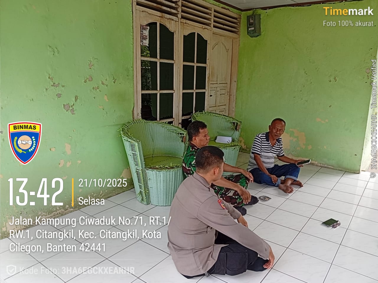 Cilegon - Demi Menjaga keamanan dan ketertiban masyarakat di daerah binaan, Bhabinkamtibmas Polsek Ciwandan Polres Cilegon Polda Banten bersama Babinsa Koramil Ciwandan Laksanakan Patroli Bersama guna membangun sinergitas, Selasa (21/10/2025).