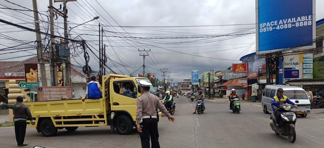 Personil Polsek Anyar Pengaturan Lalu Lintas Jalur Wilayah Anyar-Cinangka