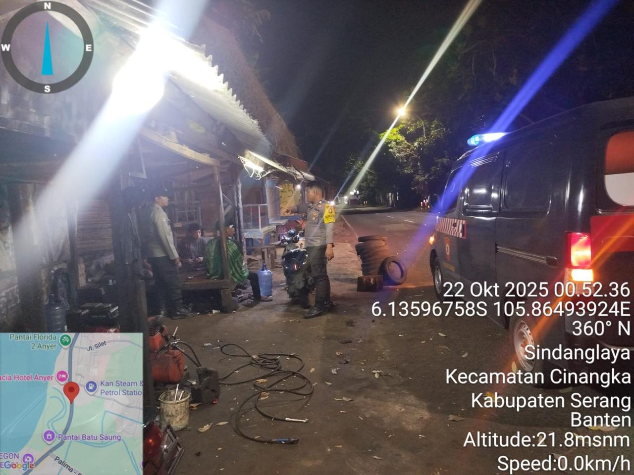 *Cilegon* – Dalam Rangka Pencegahan Kejahatan Jalanan dan Memelihara situasi keamanan dan menjaga serta memberikan rasa aman dan nyaman di masyarakat,Salah satu upaya untuk mewujudkan hal tersebut sebagaimana yang dilakukan oleh Personil Polsek Cinangka Polres Cilegon Polda Banten melaksanakan giat patroli blue light malam hari hingga menjelang pagi, Rabu (22/10/2025).