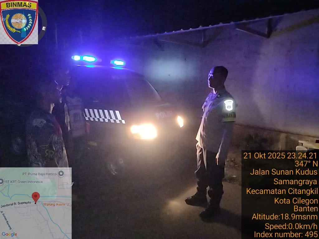 Cilegon - Dalam rangka menekan tindak kriminalitas serta untuk memberikan rasa aman dan nyaman kepada masyarakat terutama pada malam hari,Personil Polsek Ciwandan Polres Cilegon Polda Banten melakukan patroli malam hari di daerah-daerah yang rawan kriminalitas, Rabu (22/10/2025).