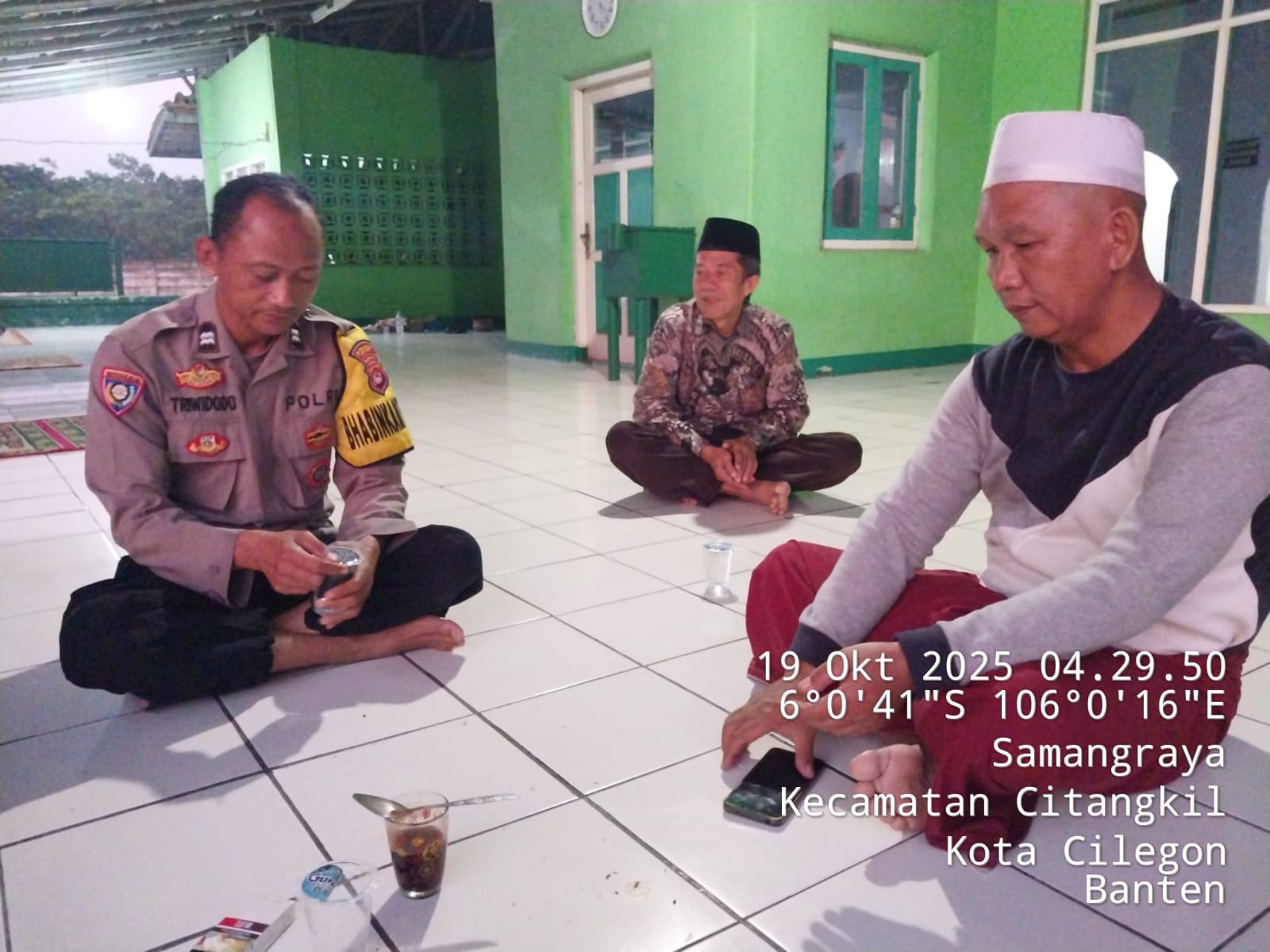 Cilegon – Bhabinkamtibmas Polsek Ciwandan Polres Cilegon Polda Banten menggelar kegiatan Pembinaan Rohani dengan Sholat subuh keliling di Masjid Yang ada Di Daerah hukum Polsek Ciwandan Polres Cilegon Polda Banten, Rabu (22/10/2025).