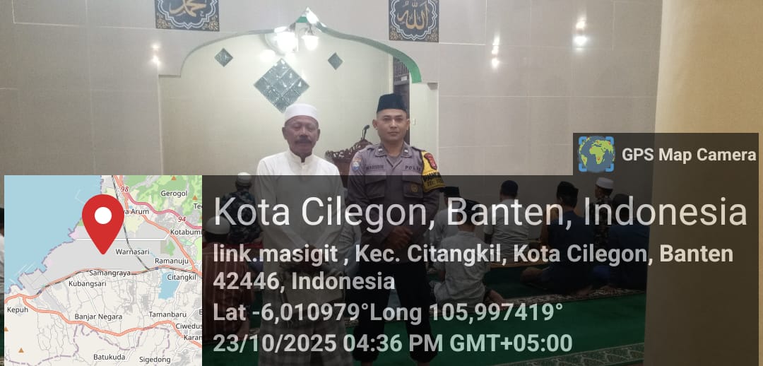 Cilegon - Dalam Rangka Memakmurkan Masjid Dan Sambang,Bhabinkamtibmas Polsek Ciwandan Polres Cilegon Polda Banten Sholat Berjama’ah dan Bersilaturahmi kepada para tokoh Agama sebagai upaya meningkatkan Ukhuwah Islamiyah dalam menjalin silaturahmi dan membangun komunikasi yang baik, Kamis (23/10/2025).