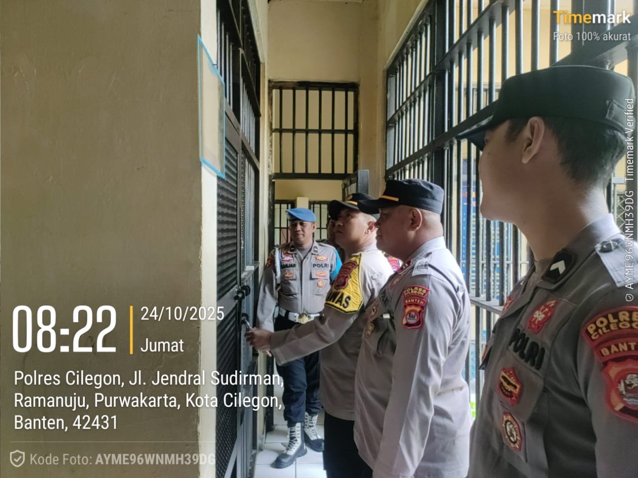 Cilegon,Personel piket Satreskrim Polres Cilegon Polda Banten beserta piket fungsi lainya melakukan pengecekan jumlah narapidana dan ruang di setiap kamar rutan di polres cilegon. Kegiatan ini bertujuan agar terus memonitor keadaan para narapidana di rutan polres cilegon dan menghindari hal-hal yang tidak diinginkan serta mengecek kekuatan setiap ruangan. Jumat  (24/10/2025).
