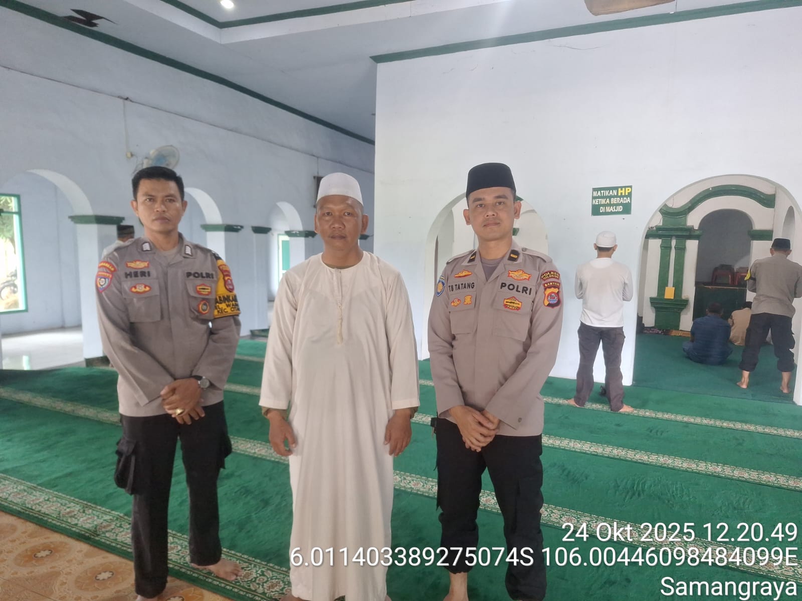 Cilegon - Guna memastikan Harkamtibmas tetap berlangsung aman kondusif,Bhabinkamtibmas Polsek Ciwandan Polres Cilegon Polda Banten menyambangi DKM pengurus Masjid Usai Sholat Berjama’ah,Jum’at (24/10/2025).