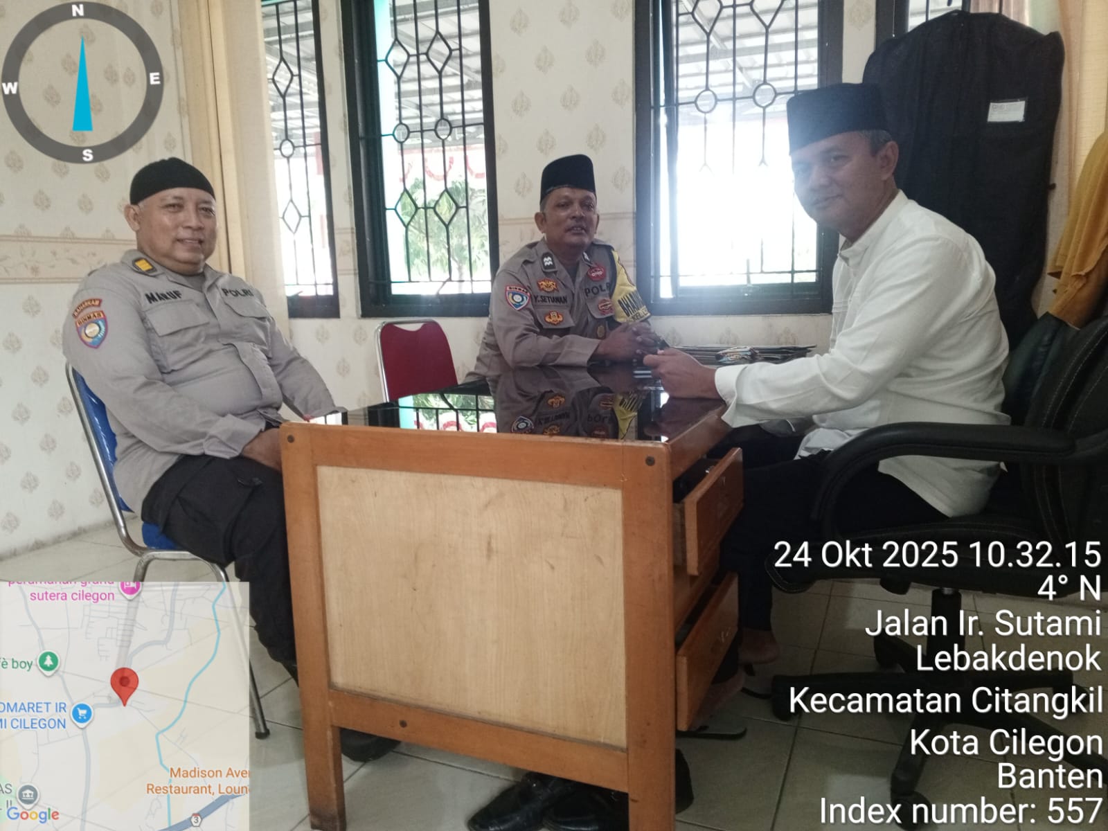 Cilegon -  Kali ini Wakapolsek Ciwandan AKP Uup M. Ma'ruf Dan Bhabinkamtibmas Kelurahan Lebak Denok Polsek Ciwandan Polres Cilegon Polda Banten AIPTU Yudi Setiawan melaksanakan kegiatan sambang Dialogis Dan silaturahmi Bersama Lurah Dan Staff Kelurahan Lebak Denok Kecamatan Citangkil Kota Cilegon, Jum’at (24/09/2025).
