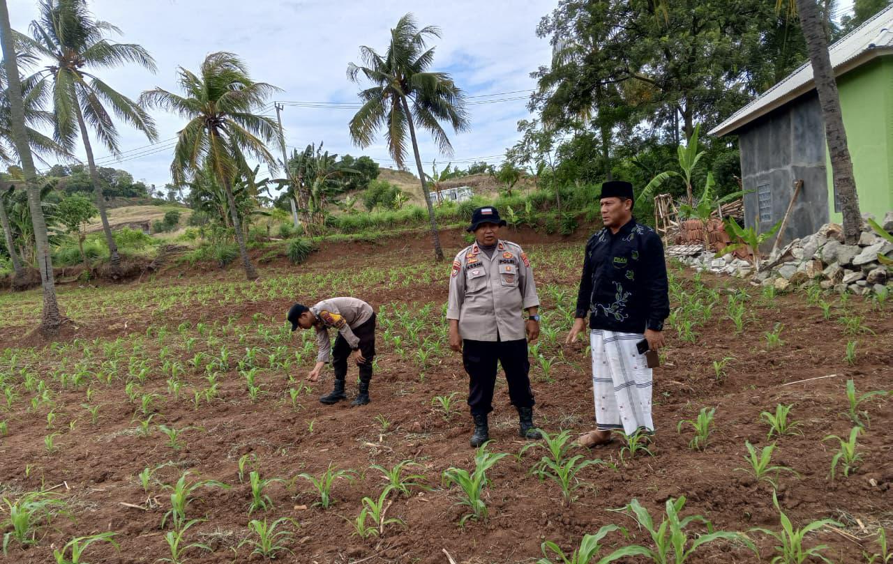 Memastikan Pertumbuhan Jagung, Kanit Binmas dan Bhabinkamtibmas Bersama Petani Cek Secara Rutin Pertumbuhan Tanaman Jagung Pipil