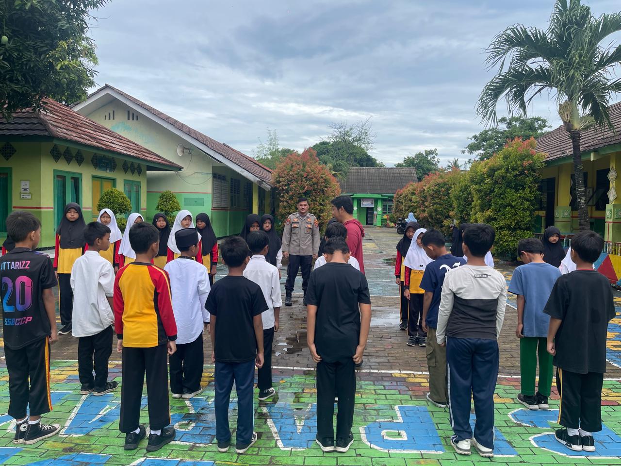Dalam sambutannya, Bhabinkamtibmas menyampaikan bahwa kegiatan ini merupakan wujud nyata kepedulian Polri terhadap dunia pendidikan serta pembinaan generasi muda agar tumbuh menjadi pelajar yang disiplin, bertanggung jawab, dan cinta tanah air.